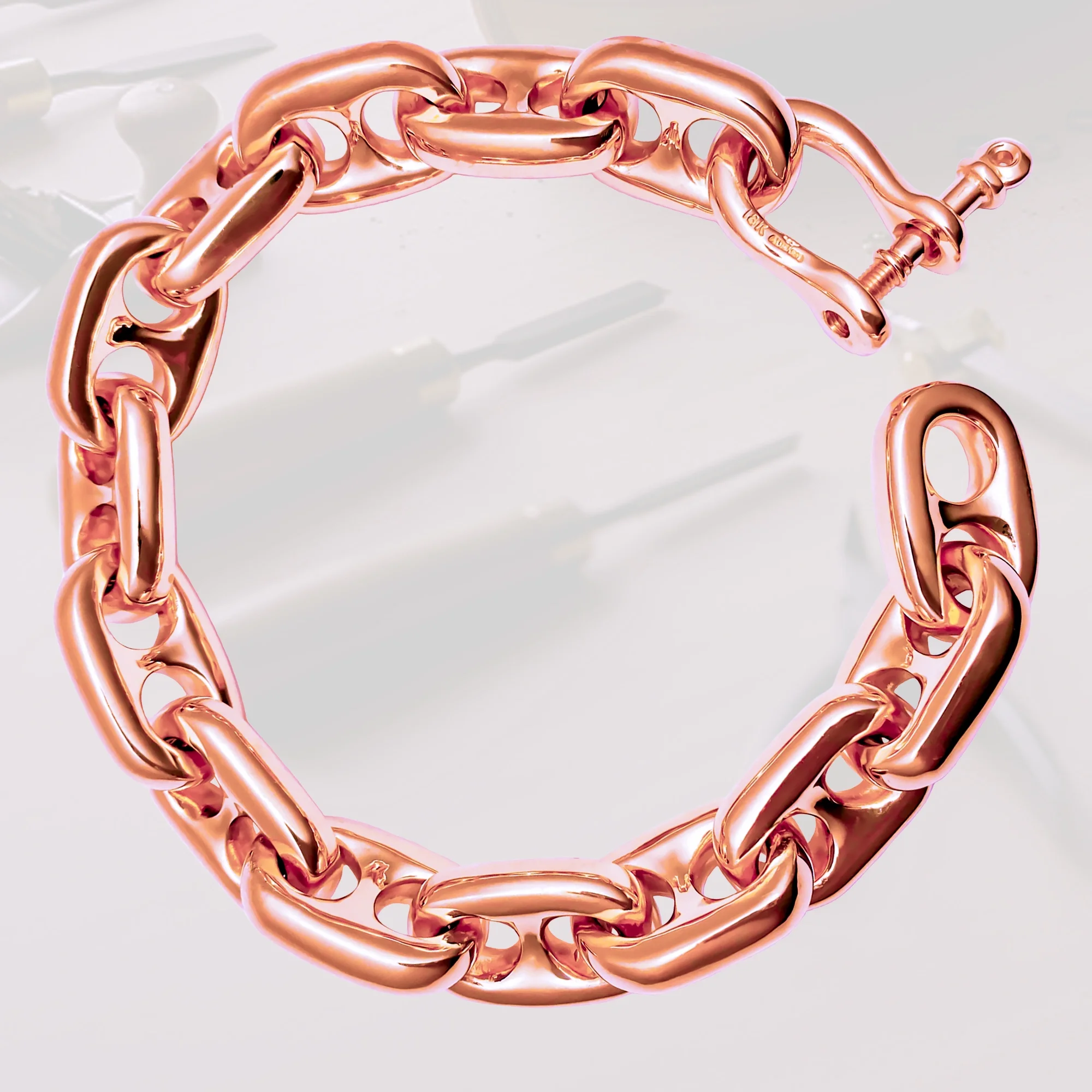 Rose Gold Anchor Chains for sailors. The value and appeal of gold. Rose Gold Anchor Chain Bracelet from $6,000.00 Anchor Chain Bracelet - Rose Gold Medium from $9,900.00 Anchor Chain Bracelet Large - Rose Gold from $19,300.00 Anchor Chain Bracelet - Rose Gold Toggle Clasp from $990.00