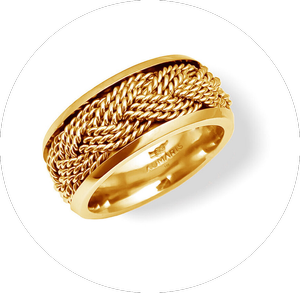 These unique sailor's rings are deeply rooted in old maritime traditions that go back millennia. They are handwoven one at a time with solid strands of silver, gold, or platinum wire.